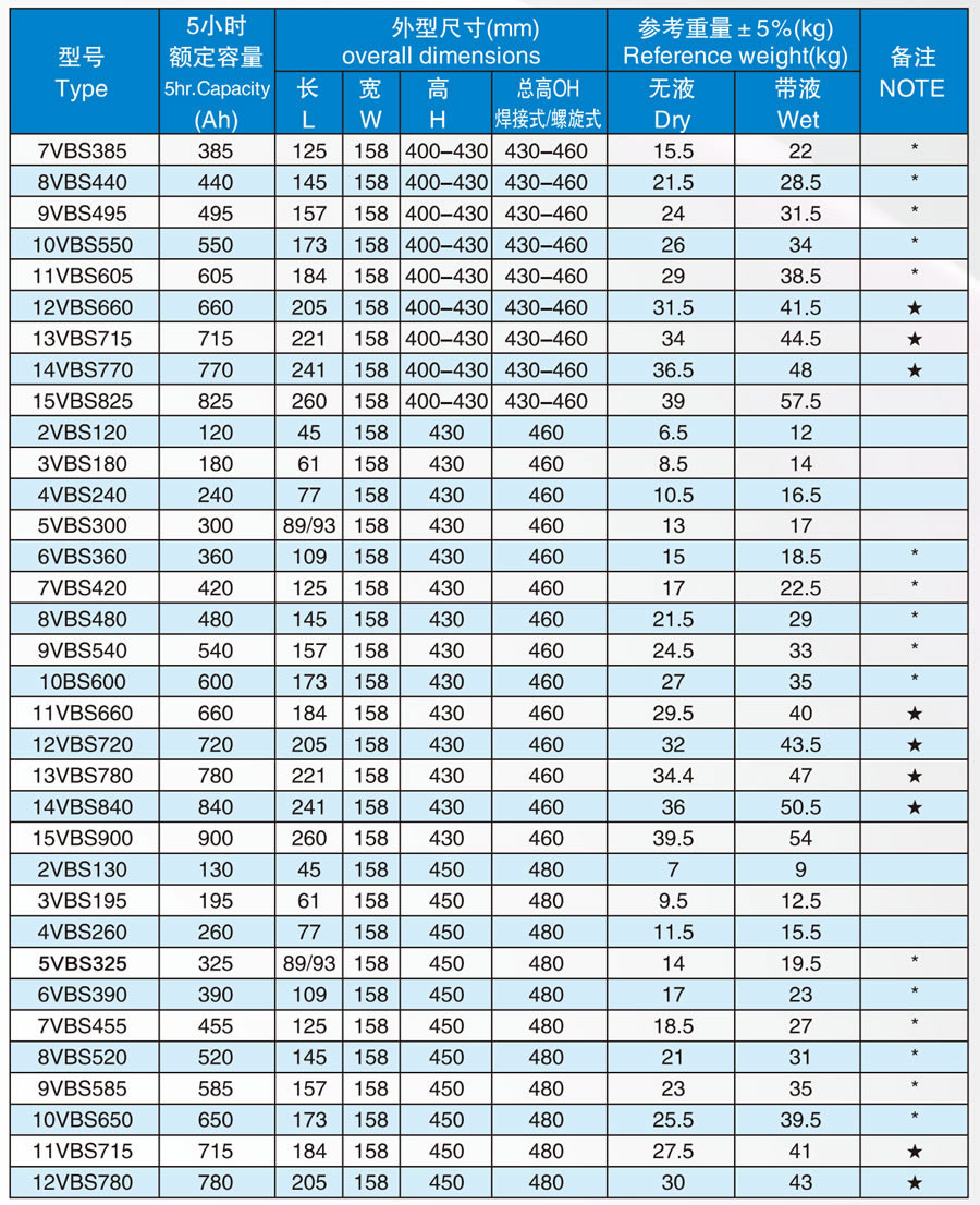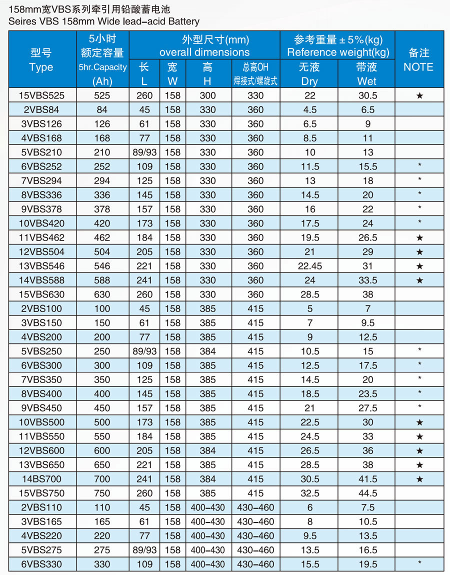 Traction battery series Jinle battery > Traction battery series > 158mm wide VBS series